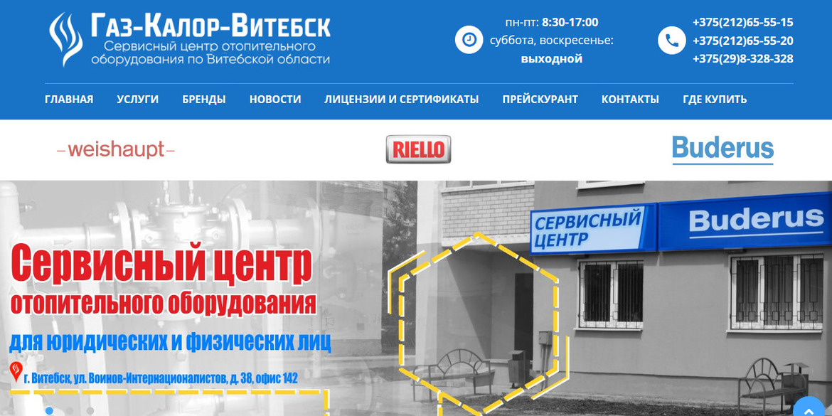 Разработка сайта по продаже и обслуживанию газовых котлов Vitkotel.by