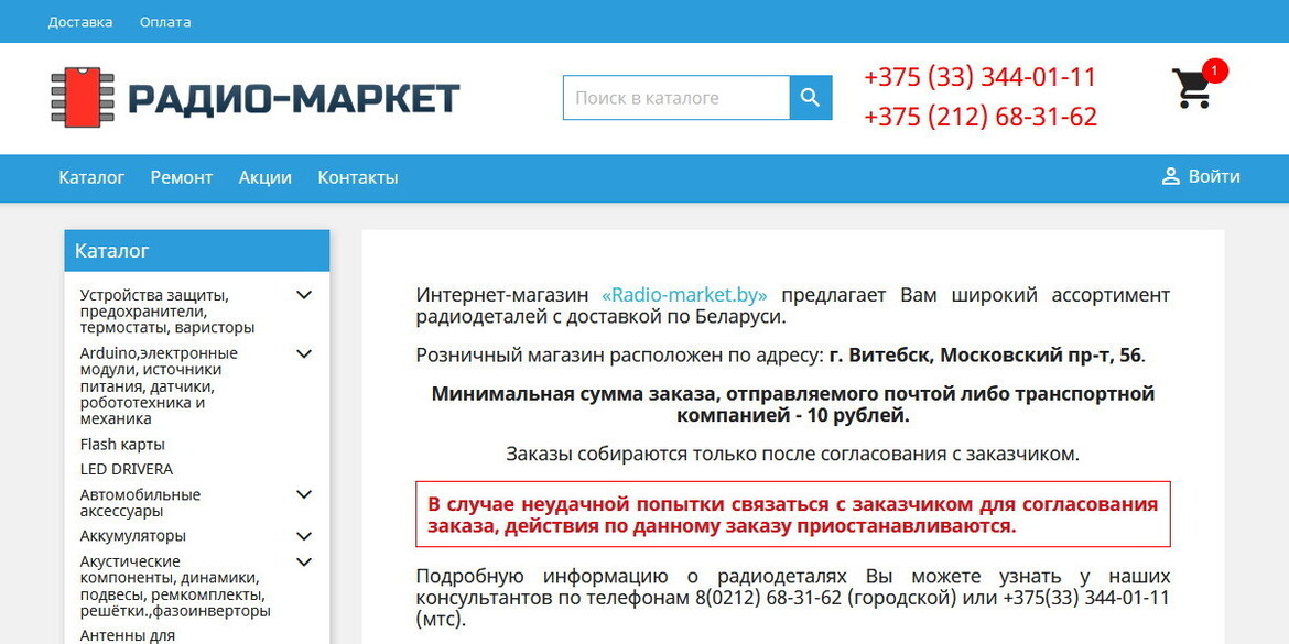 Создание интернет-магазина радиодеталей и электроники Radio-market.by